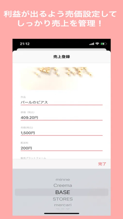 ・アプリで簡単に写真撮影をして、パーツから作品の売上まできちんと管理したい
