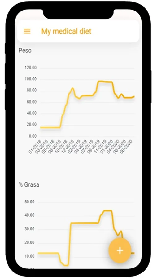 - Registro de peso, centímetros, evoluciones de tu dieta etc.