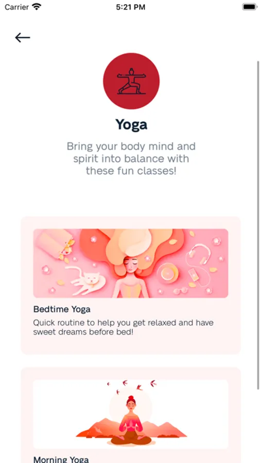 The APP starts out with Morning and Evening Yoga. These are mini classes which the children can take part in when they wake up to start the day with some ease as well as grounding and finishing the stresses of the day in a short releasing evening flow.