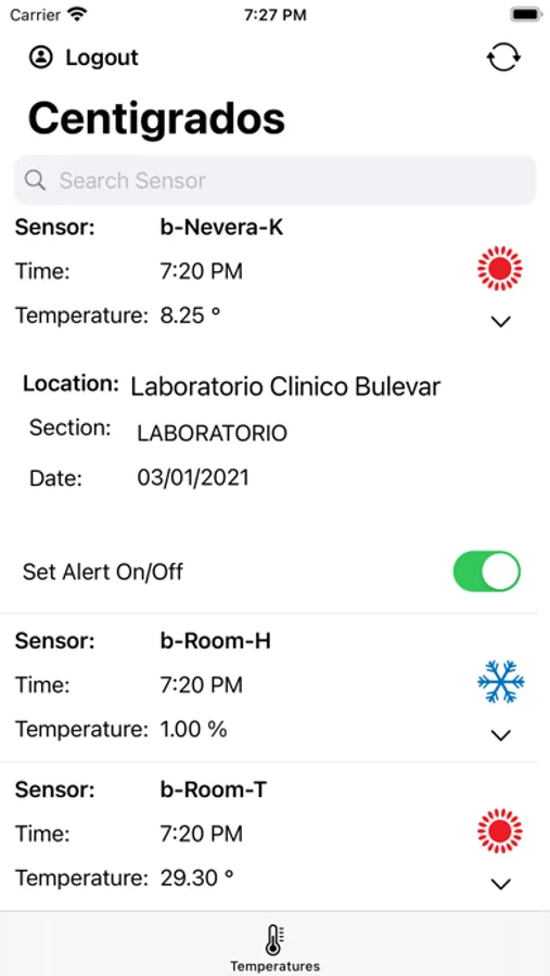 The application is intended to be used by companies that have the temperature monitor system installed in their premises. The application is free to use and does not have a subscription. Is a tool for accessing your data and manage notifications (email, text and push) at will or monitor the temperatures in real time or check how the temperatures had change checking the historical data.