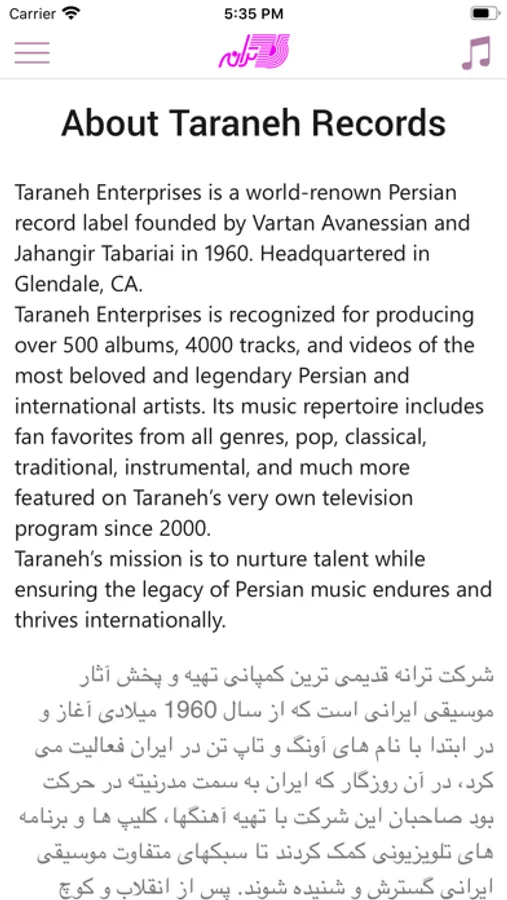 The best Persian music and entertainment from Radio Taraneh on your iPhone
