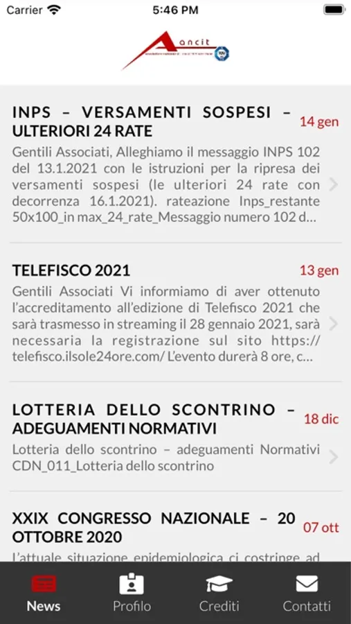 Attraverso l'app ANCIT potrai rimanere sempre aggiornato sulle ultime news e comunicazioni ANCIT, oltre che visualizzare il tuo tesserino di associato e visualizzare la lista di crediti acqusiti attraverso i corsi di formazione svolti durante l'anno.