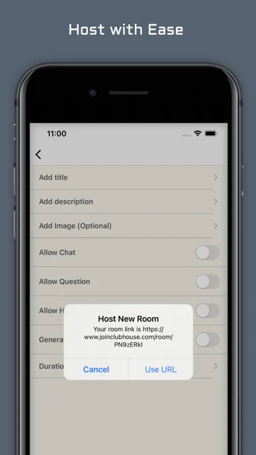 [+] Create your room with the Clubhouse link, become the host.