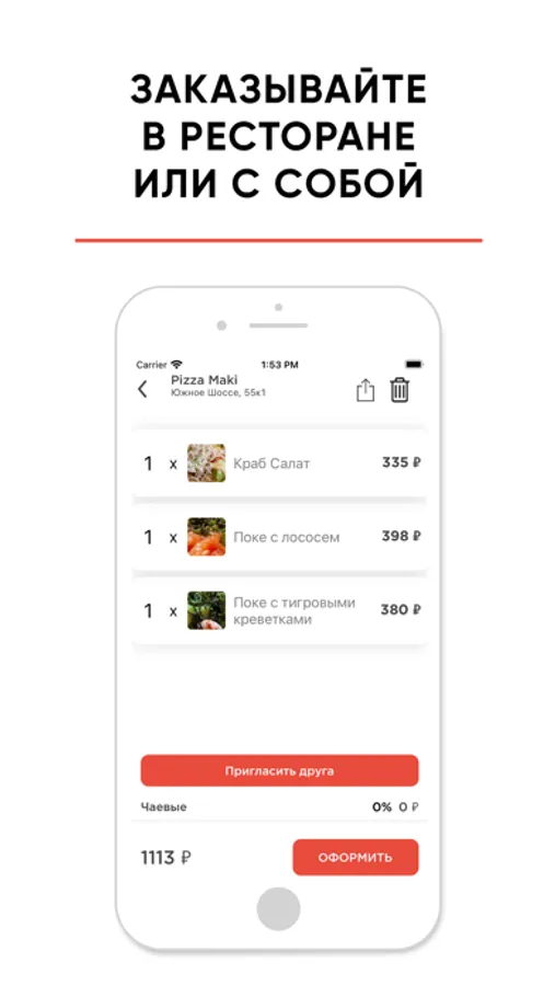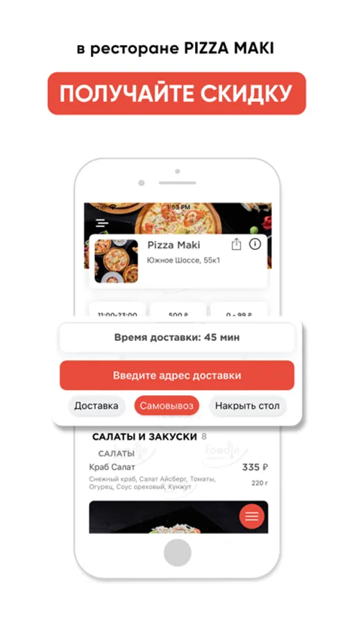 Заказывайте доставку в нашем мобильном приложении или оформляйте самовывоз. Укажите время визита, и мы подготовим всё «с собой» точно к этому моменту.