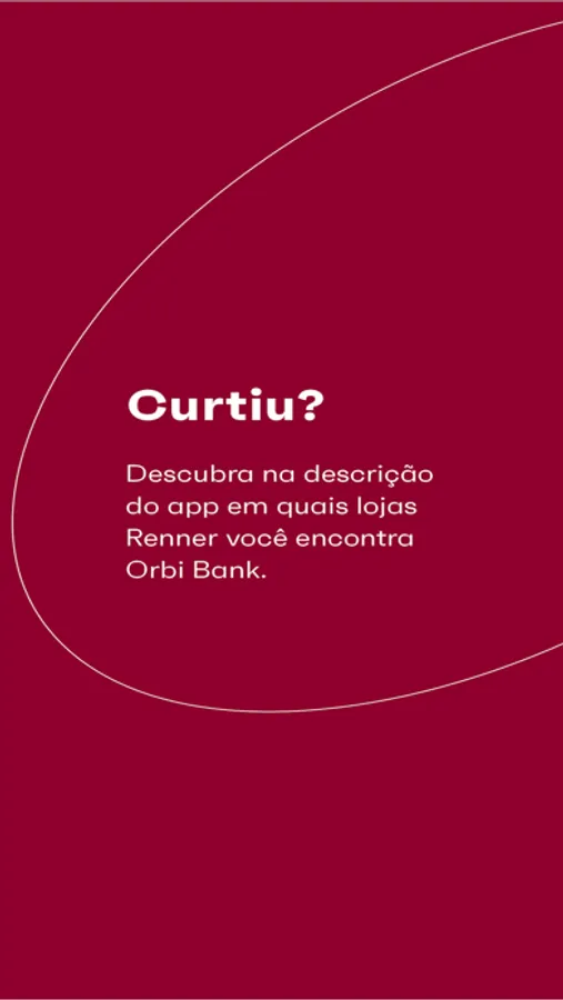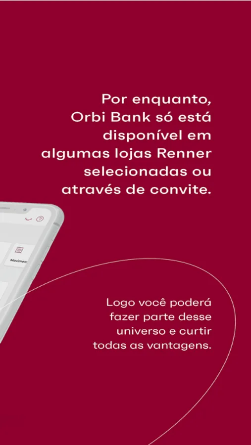 Nesse momento você ainda não vai conseguir abrir sua conta Orbi Bank pelo app, apenas em algumas lojas Renner selecionadas ou através de convite. Estamos trabalhando para que você possa usufruir de todas as funcionalidades o mais breve possível.