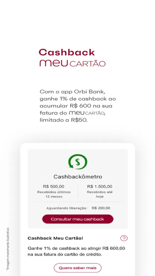 Você também pode ganhar cashback utilizando o Meu Cartão. Confira mais detalhes no app.