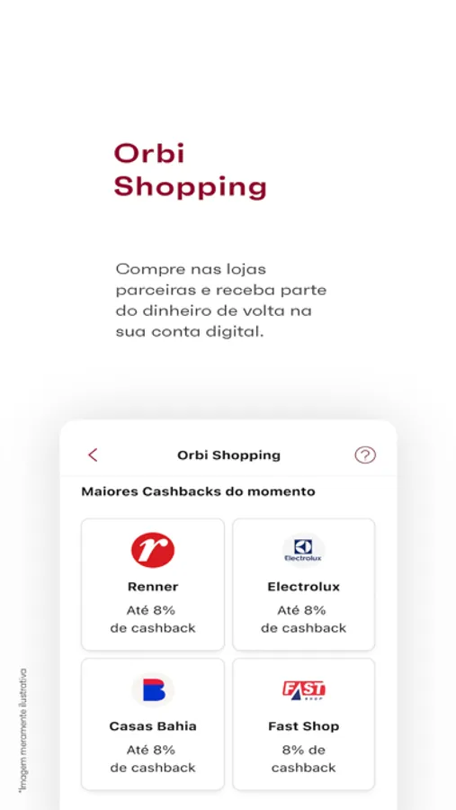 Compre nas lojas parceiras e ganhe cashback direto na sua conta Orbi Bank. Demais, né?