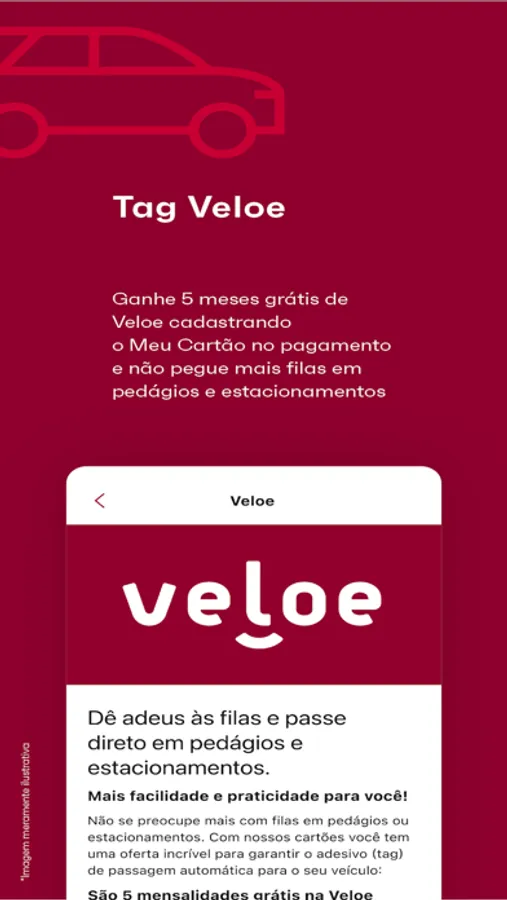 Cadastre o Meu Cartão como forma de pagamento da sua assinatura e ganhe 5 meses gratuitos de Veloe. Passe direto em pedágios, estacionamentos e muito mais!