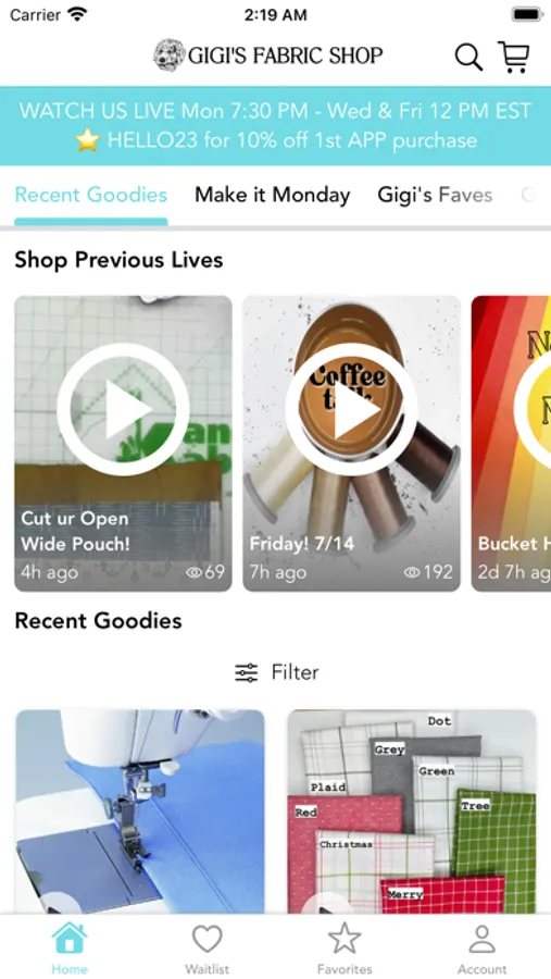 Welcome to the Gigi's Fabric Shop App! The best way to shop with Gigi's Fabric Shop on iOS!