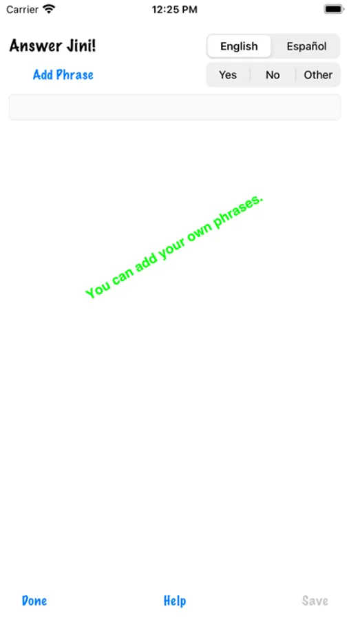Answer Jini! is a little toy that answers Yes/No questions. Just ask (or think) a question, and push the Big Red Button. The Jini speaks and gives you an answer. Works in English and Spanish.