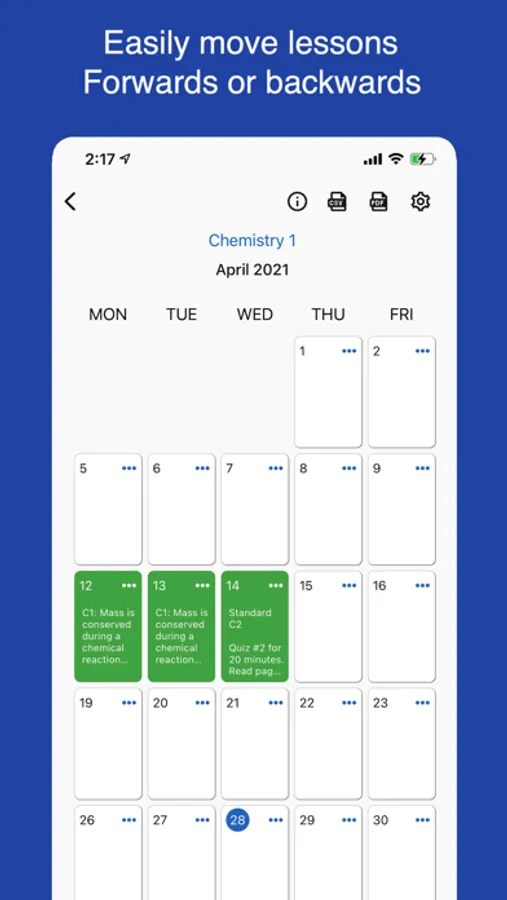 • Easily move lessons forward or backwards
