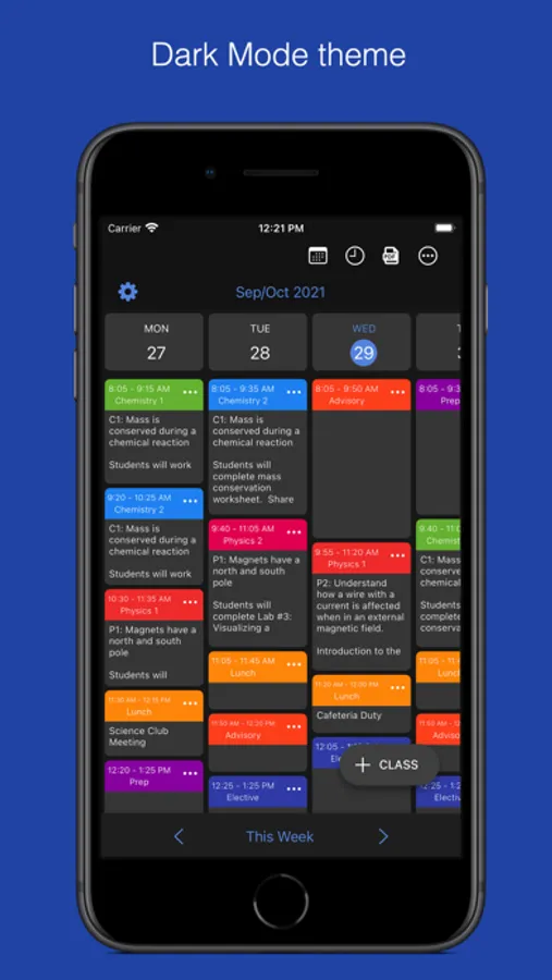 • View lessons for the day, the week, or by a class