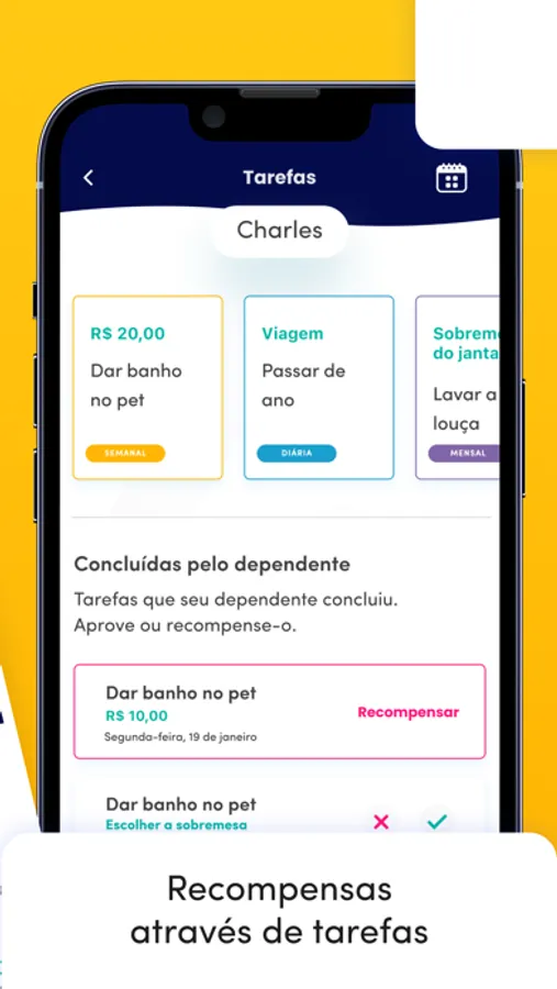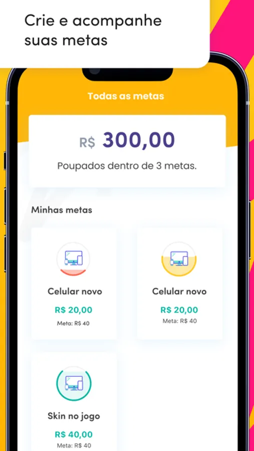Funciona como um “cofrinho”! Pelo app, as crianças e adolescentes podem criar objetivos de compra, e poupar de forma gamificada e divertida.