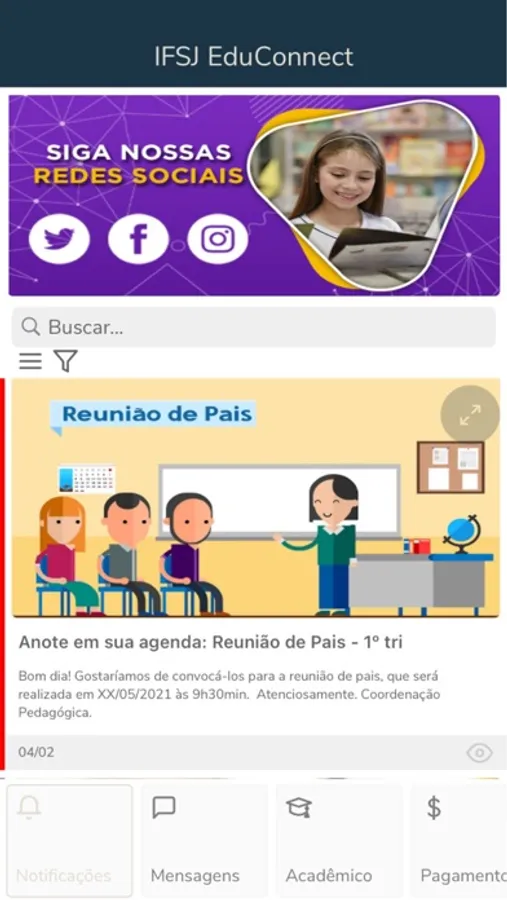 O seu principal canal de comunicação do Instituto das Filhas de São José, onde você encontrará toda a comunicação institucional, serviços acadêmicos e financeiros das Escolas São José de Vila Matilde, São José de Porto Feliz e Sagrada Família. Educandos e suas famílias têm acesso aos comunicados, avisos, lembretes, notas, frequência, extrato financeiro, ocorrências, quadro de horários e muito mais. Educadores podem lançar notas, fazer chamada e registrar o conteúdo das aulas. Baixe agora e saiba mais.