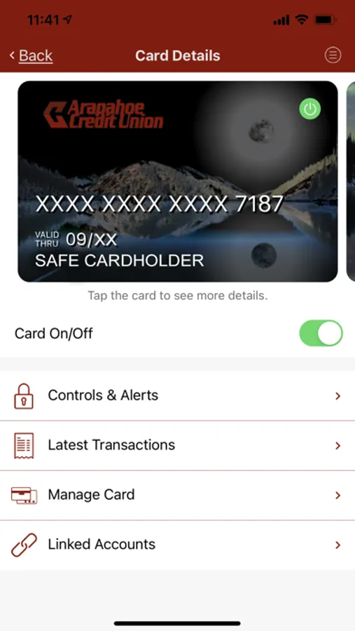 Card Control helps you protect your debit and credit card by sending you transaction alerts and giving you the ability to define when, where and how your cards are used. Simply download to your smart phone, then customize your alert preferences and usage settings to monitor and manage your cards.