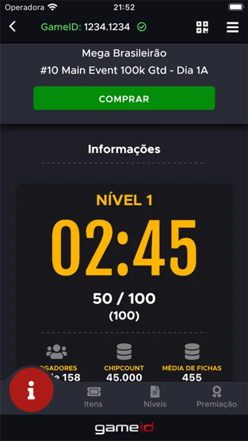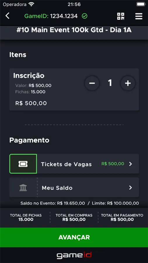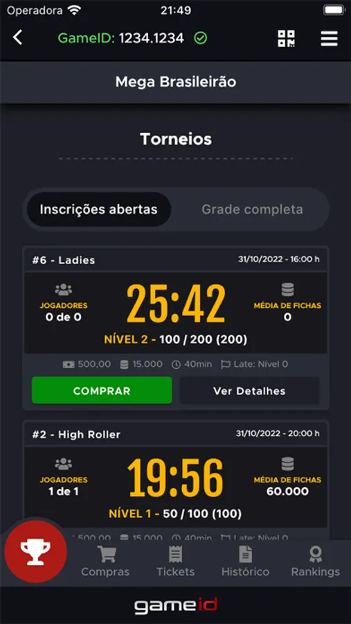 An alternative method will be to register via GameID and pay directly at the club or event cashier. This format provides greater agility in addition to significantly reducing the time it will take to complete your service. (Several clubs and events, GameID partners, will have exclusive boxes for this type of service)