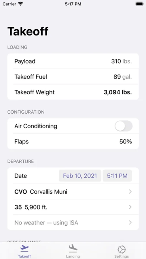 *This app has not been approved by the FAA or by Cirrus Aircraft as an official source of performance information. It is your responsibility to ensure that the performance data you use is accurate for current conditions.