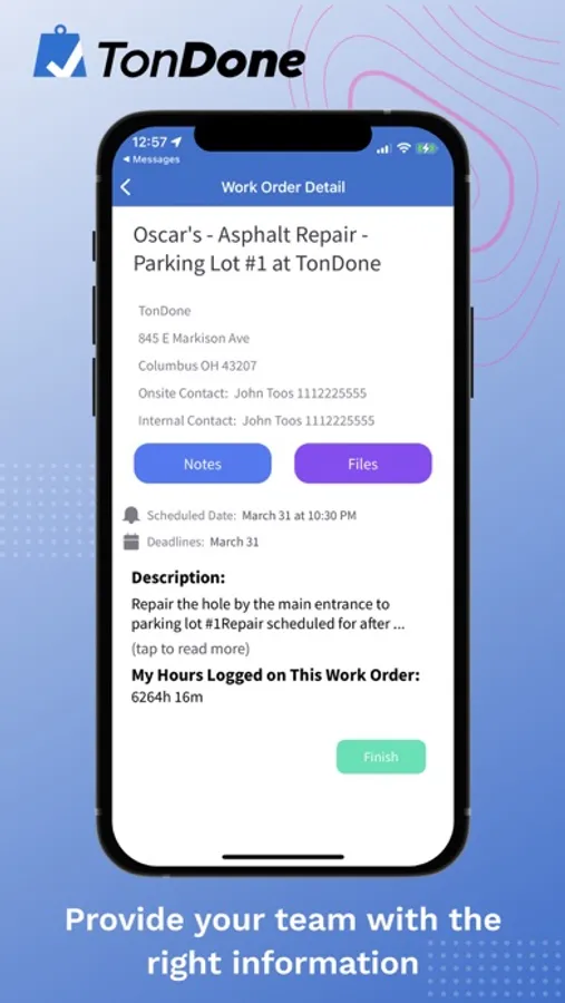 The TonDone app provides task management for frontline workers and an intelligent backend for managers to streamline communications and reduce service errors. The application connects to the TonDone customer relationship management system in order to streamline work order management and customer communication across building and field service companies.