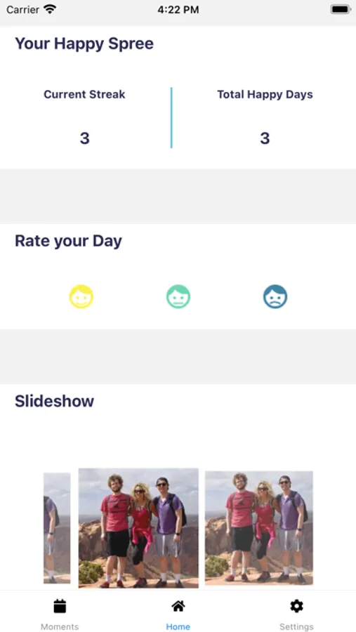 2) Click an icon (happy, meh or sad) on the home screen to rate your day.