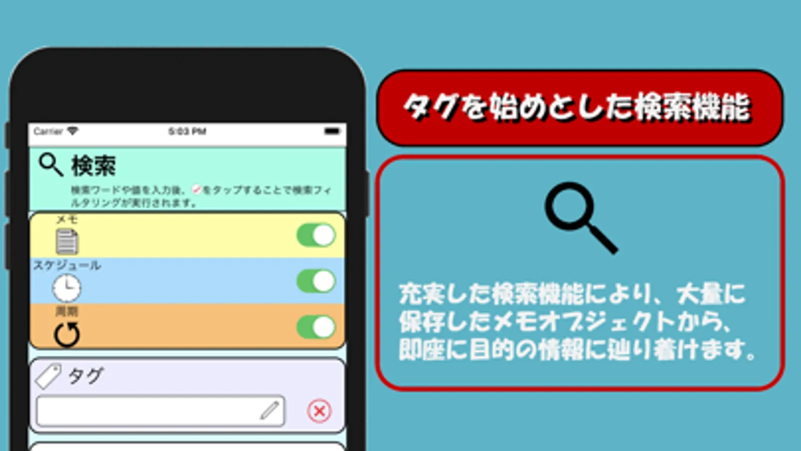 → 複数のタグを付加でき、検索時に利用可能です。