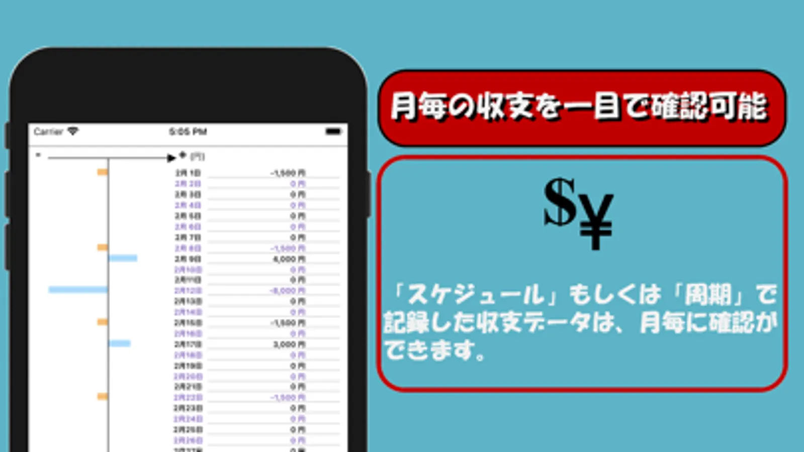 → 正負の符号を利用して収入、もしくは支出の記録ができます。