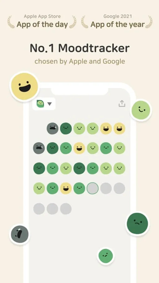 Take a look at how you feel during a month with five mood beans. If you click on the bean, you can check the record you left that day right away.