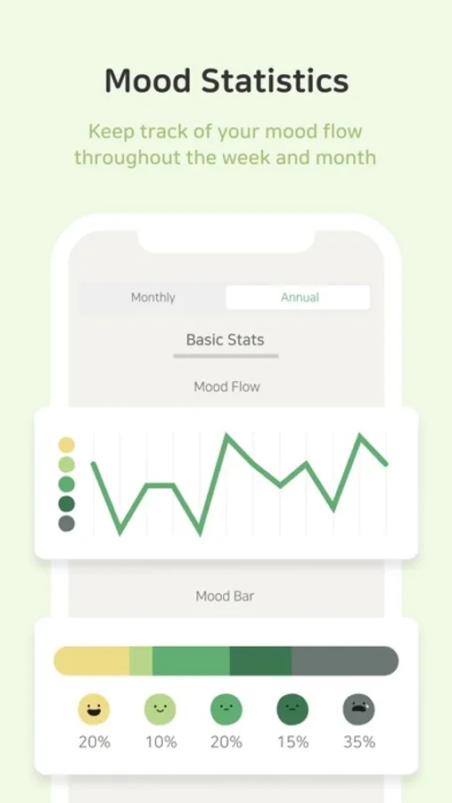Look at your mood flow through statistics and see what activities affect your mood. You can also check the number of icon records on a weekly and monthly basis.