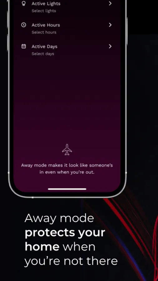 VREEDA ‘Away mode’ makes it look like someone’s in, even when you’re out. Whether you’re away for an evening, a business trip or a holiday, turning on ‘away mode’ increases protection at the touch of a button. Customise settings any time, and even programme for months in advance if you know already know your schedule.