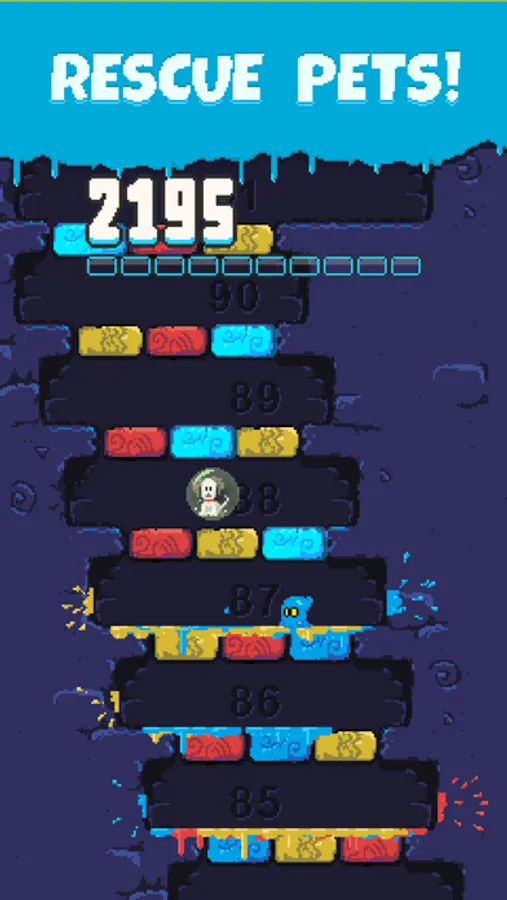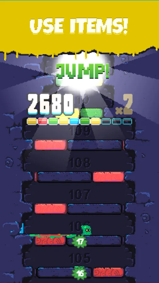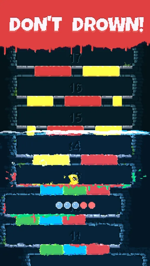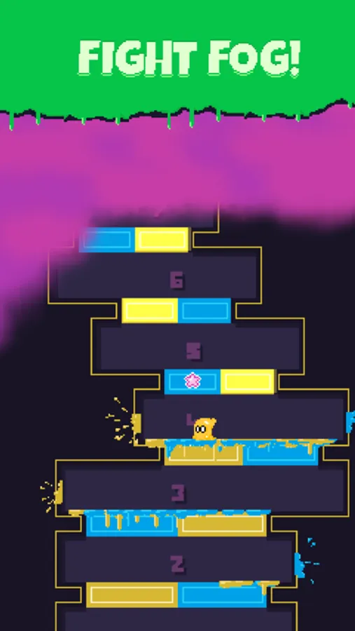 The ghost runs from left to right and every time it changes direction it randomly picks a color from the ceiling blocks. You can only jump through blocks of the ghost’s current color. Reaching a new floor adds points to your score. Leave a floor with no more than one turn to fill up your combo bar and multiply your score.