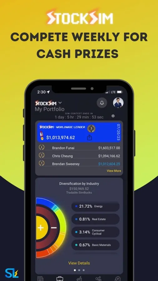 Each week, StockSim lets you invest $1,000,000 SimBucks in a worldwide paper trading competition. Check the leaderboard and share your ranking with friends!