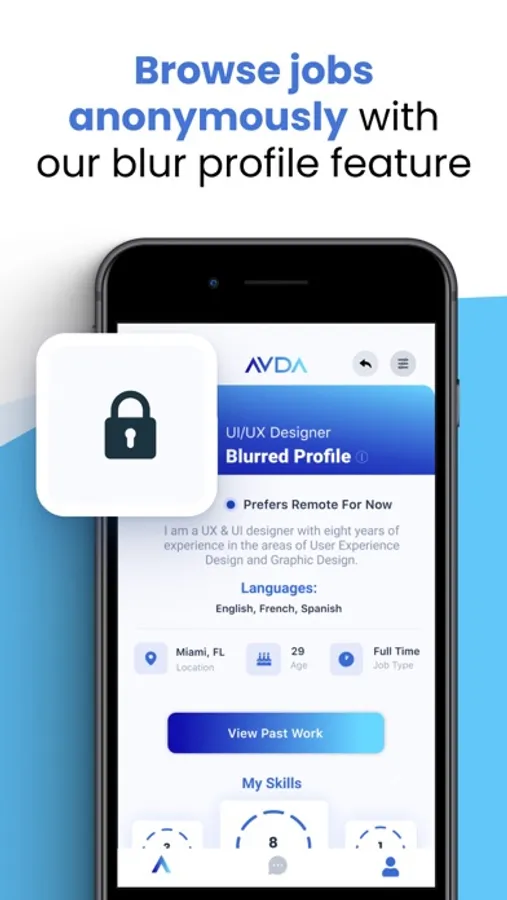 Using a simple swiping mechanic, AVDA provides a mobile-friendly way to browse job