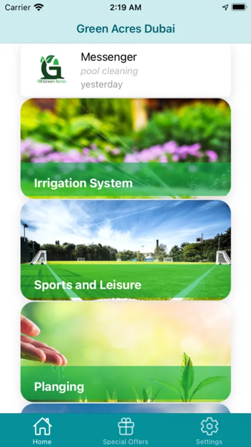 GREENACRES DUBAI App is designed to enhance the communication between all the stakeholders to ensure the best possible services. It empowers clients to directly communicate with the allocated project manager and senior management which ensures that the best possible services are rendered and the client’s concerns are immediately addressed. From enquiry to signing off the project, invoices, payments, receipts, special discount on plants/products are shared through this platform. Regular worker’s detail along with pictures are shared with clients on the App to enhance safety and security. The app allows to send new/one-off requests at any time directly to their project manager to help you to keep your house, office, premises and garden in tip-top shape. There are numerous other features such as: