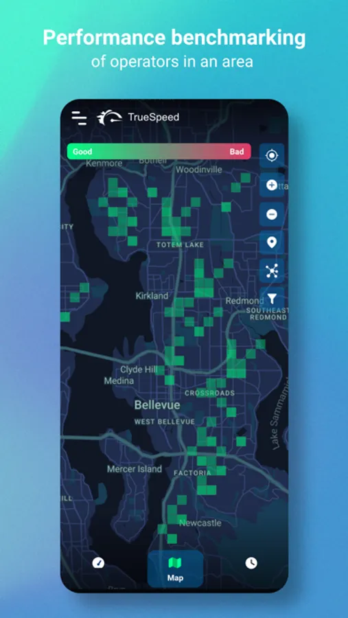 The app tests your internet connection for any type of network (2G, 3G, 4G, 5G, Wi-Fi) as well as various applications for their connection quality. The app thus combines many useful test functions (including performance test, YouTube speed test, browsing tests), which makes switching between different test apps unnecessary. It also offers a map view with extended information of the test results.