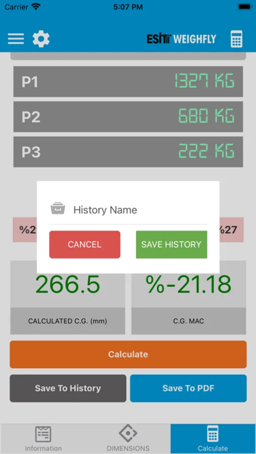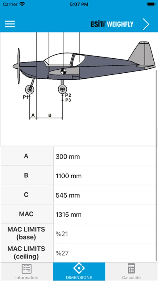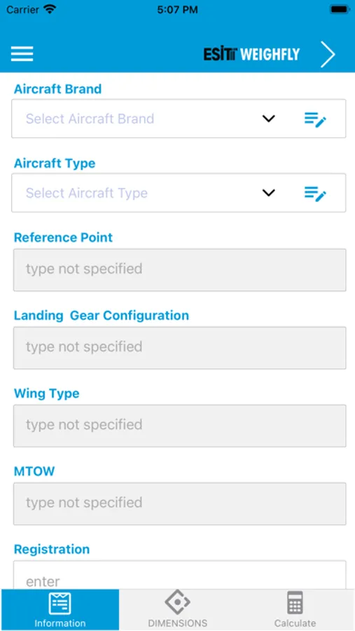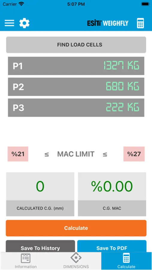 Esit Weighfly is an application designed to determine the center of gravity (CG) points of aircrafts by measuring the weights from wheels or jacks in general aviation aircrafts.