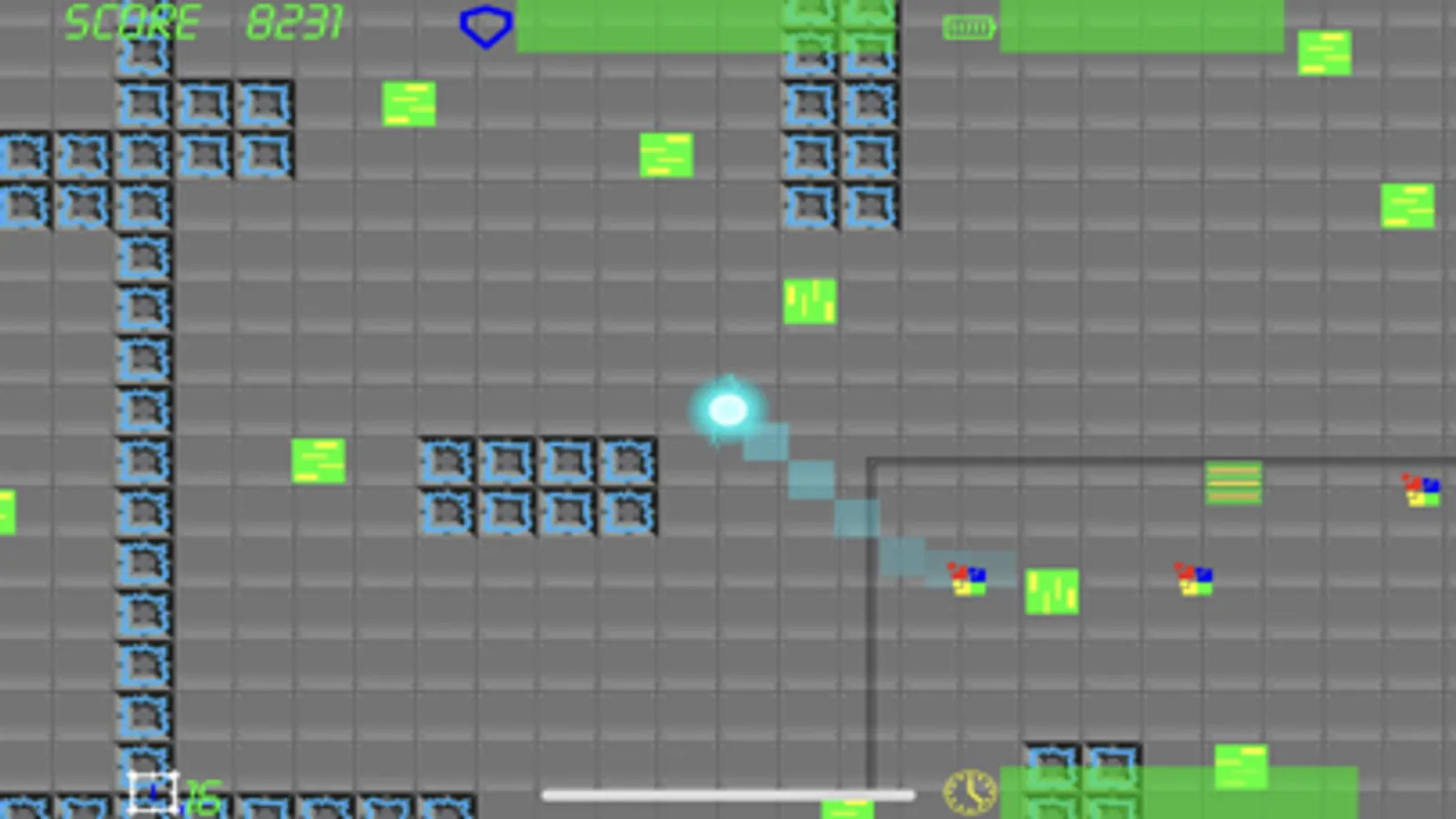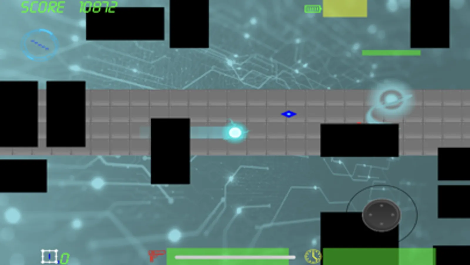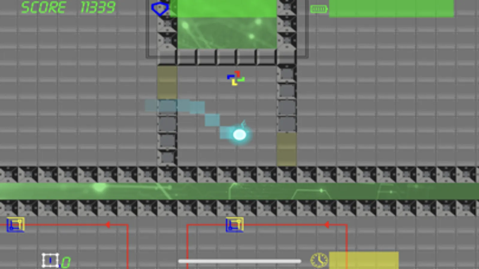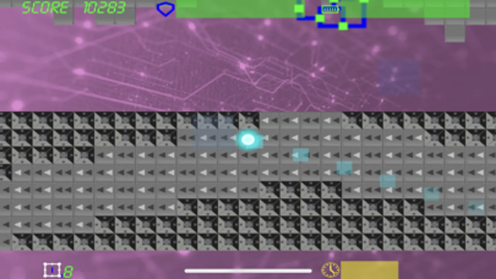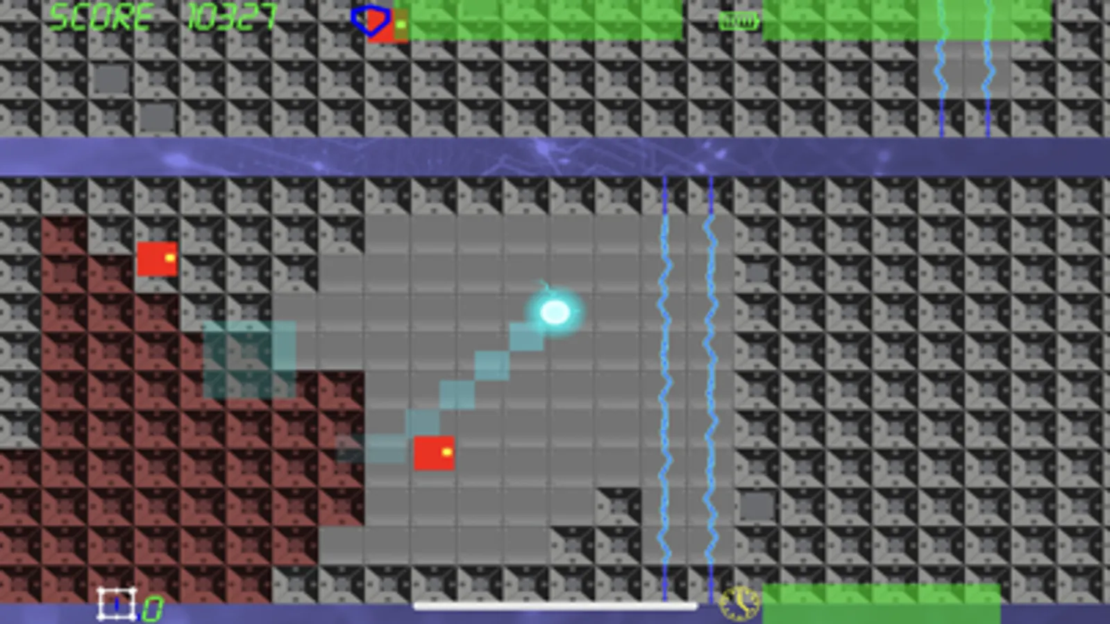 Once the level starts the player cannot stop. Maneuver your way past enemies and obstacles and reach the exit. Start with the maximum score and lose points with every hit.