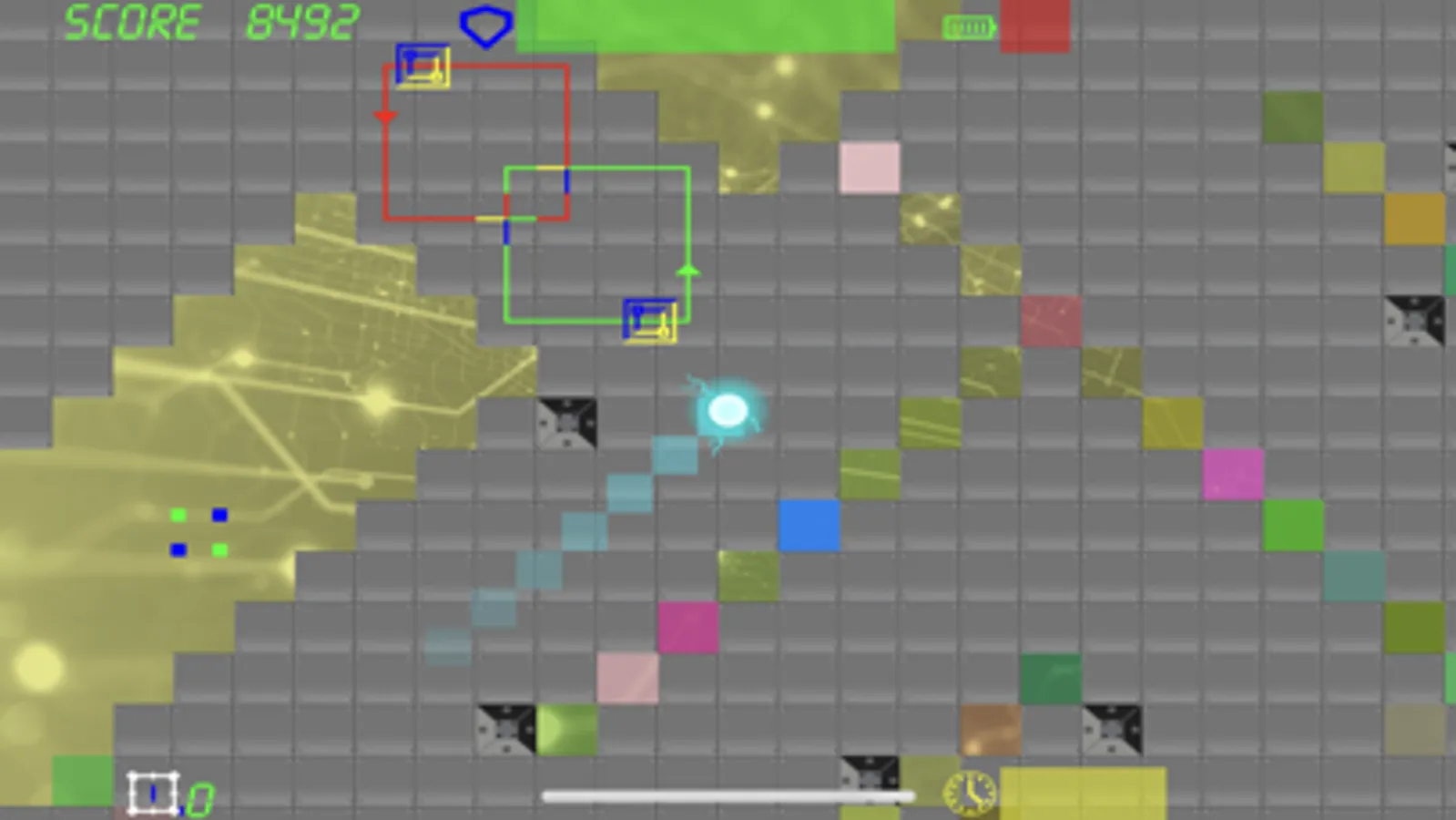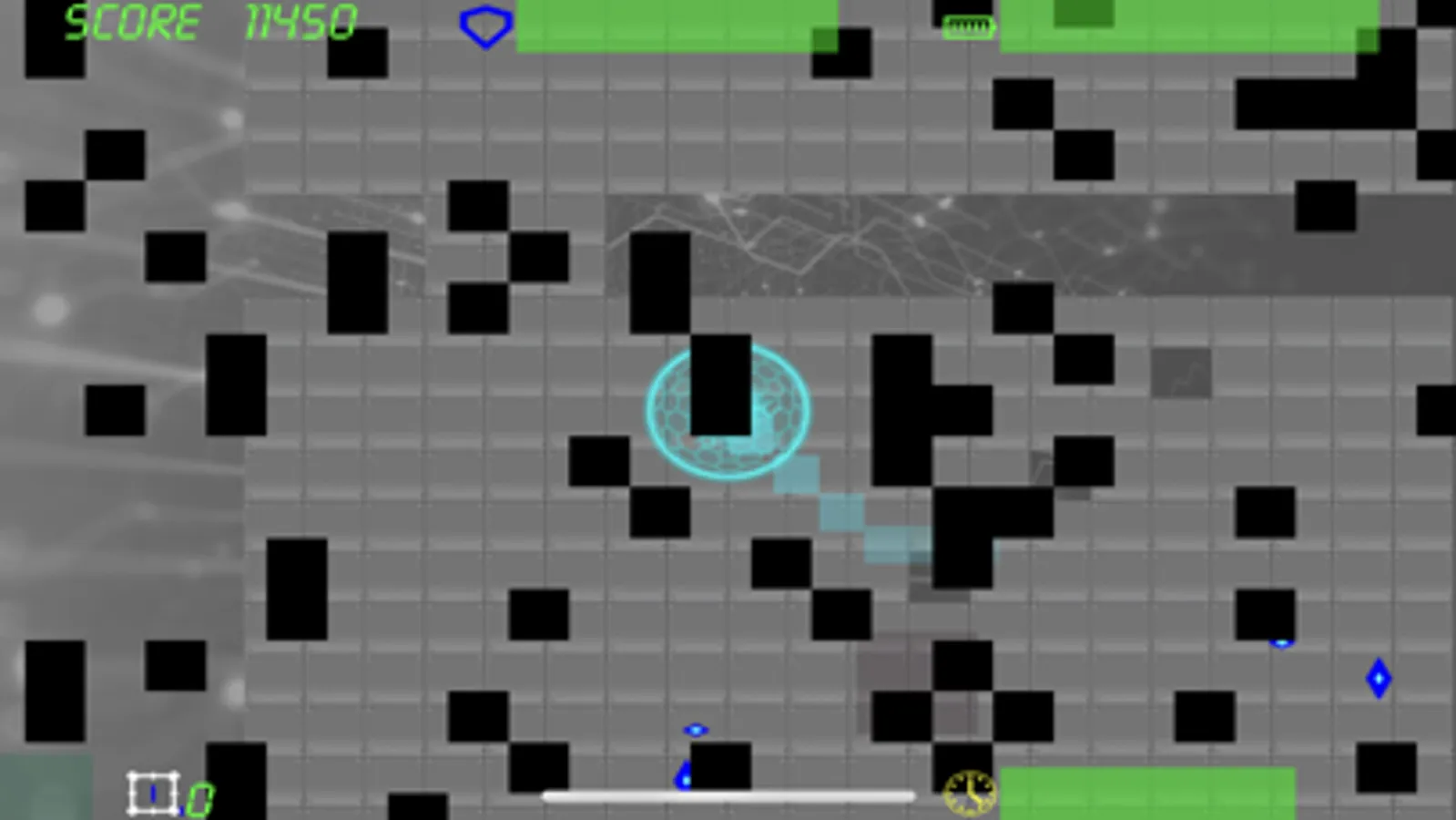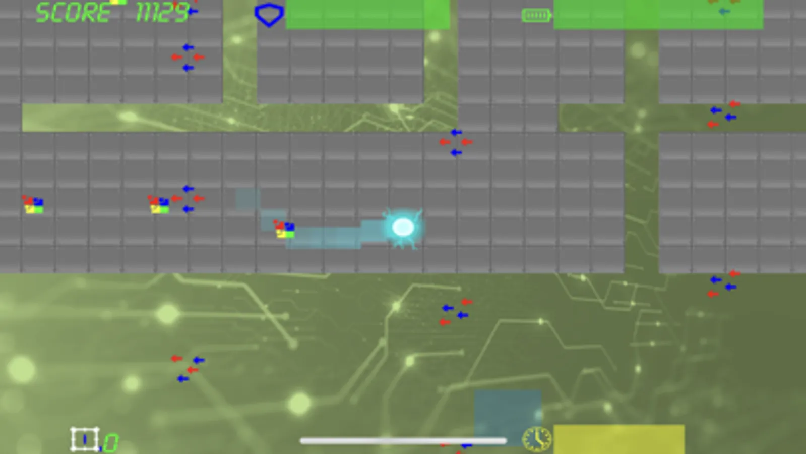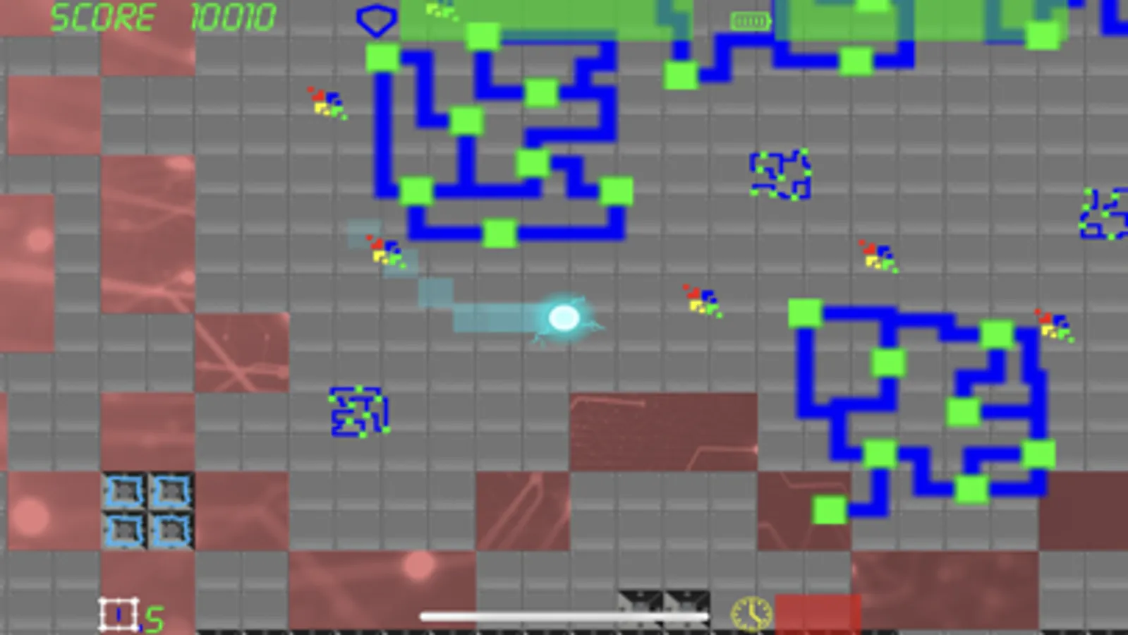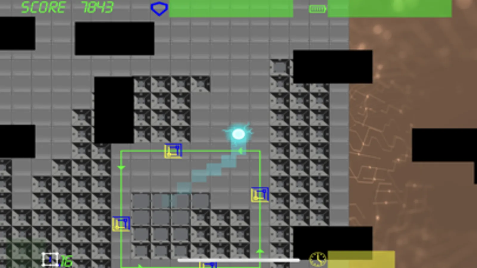 Once the level starts the player cannot stop. Maneuver your way past enemies and obstacles and reach the exit. Start with the maximum score and lose points with every hit.