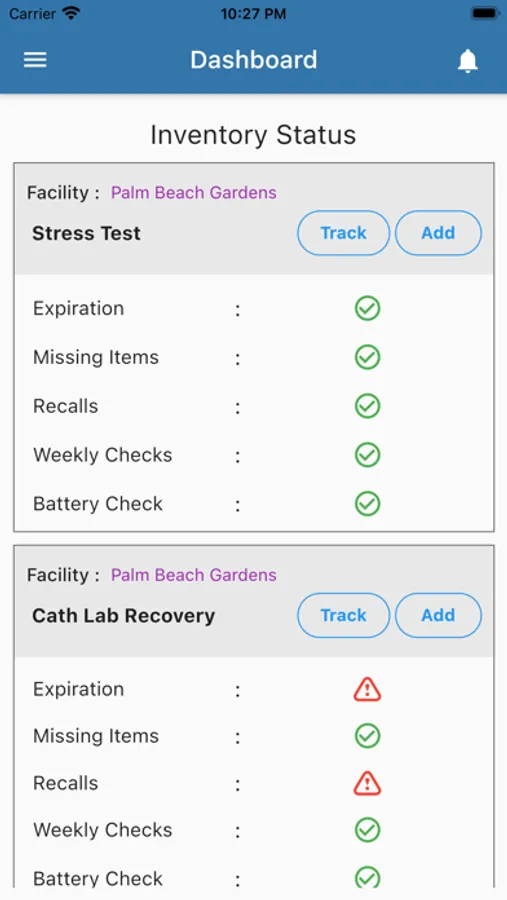 Our software provides a mobile and web application to assist you in maintaining and updating your crash carts and storage units. Currently, several practices are using paper records which are tedious, difficult to read, and not efficient. Our software is simple and a user-friendly design to optimize patient care and safety, and employee efficiency. Our software will alert you of missing items, expired items, required battery checks and required cart checks. Also, you can easily locate and remove recalled items, and place orders to refill your storage units.