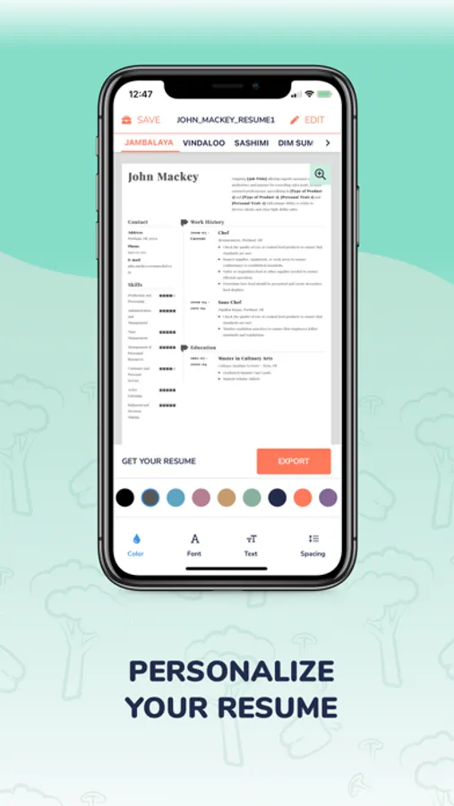 Like to have full visual control over your resume's colors, fonts, margins and spacing? You got it.
