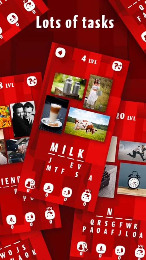 The game is similar to the easy game "Where is the logic?", But it is suitable for both adults and children. You have to solve many word tasks and tricky riddles, and for this you need to use your logic to the fullest. You will have to make words from letters based on the meaning of 4 pictures or photographs. Find what word unites all four pictures and make an answer from the necessary letters.