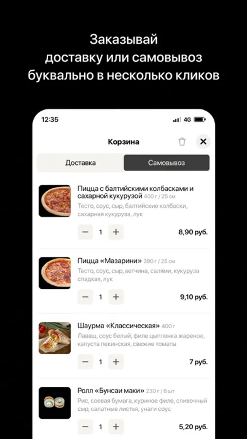 — Быстрый заказ с мгновенным подтверждением через приложение.