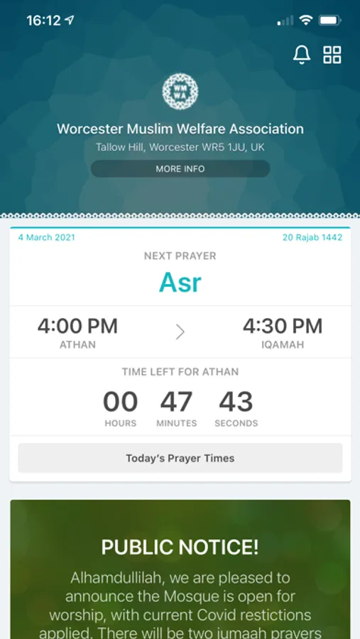 Worcester Muslim Welfare Association launches its new application to improve the communication between the mosque and the community :