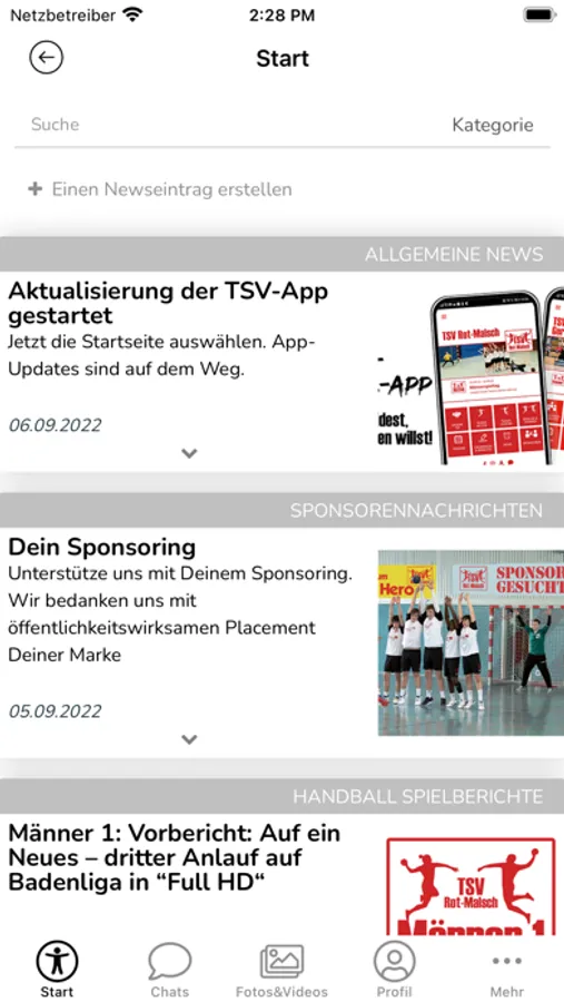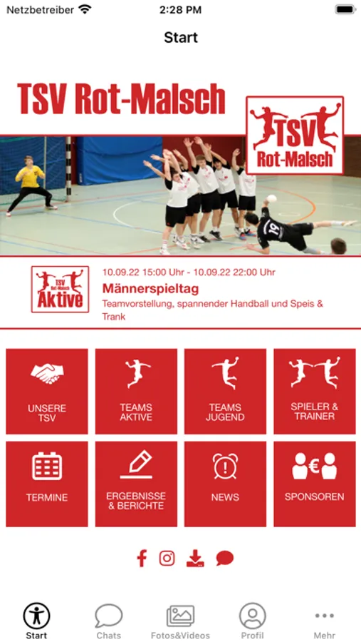 Du kannst entscheiden, ob Du die TSV App in der TSV Rot-Malsch-Ansicht oder in der TSV Malsch-Ansicht nutzen willst. Egal, wie Du Dich entscheidest, bleibst Du immer informiert über die Handballspiele, -teams und -spieler der TSV Rot-Malsch. News, Spieltermine, Spielberichte und Spielerprofile findest Du in der App, wie auch Trainingszeiten, Team- und Spielfotos und Videos. Du kannst auch mit anderen Spielern, Trainern und Spielereltern einzeln oder in Gruppen chatten. Spieler und Jugendspielereltern bekommen Infos von den Trainern. Und mit Pushmitteilungen wirst Du über wichtige Neuigkeiten informiert.
