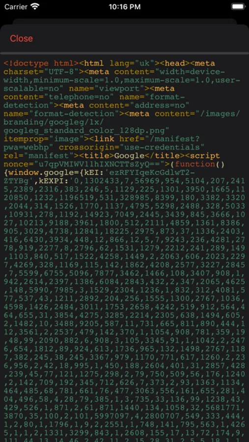 This app allows you to conveniently view the code of any website on the go. To view the code, just open the website in the built-in browser window and click on the code button.