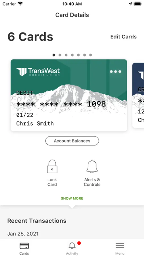 Protects your debit cards by sending transaction alerts and enabling you to define when, where and how your cards are used. Download to your smartphone, then set your preferences to monitor and manage your cards.