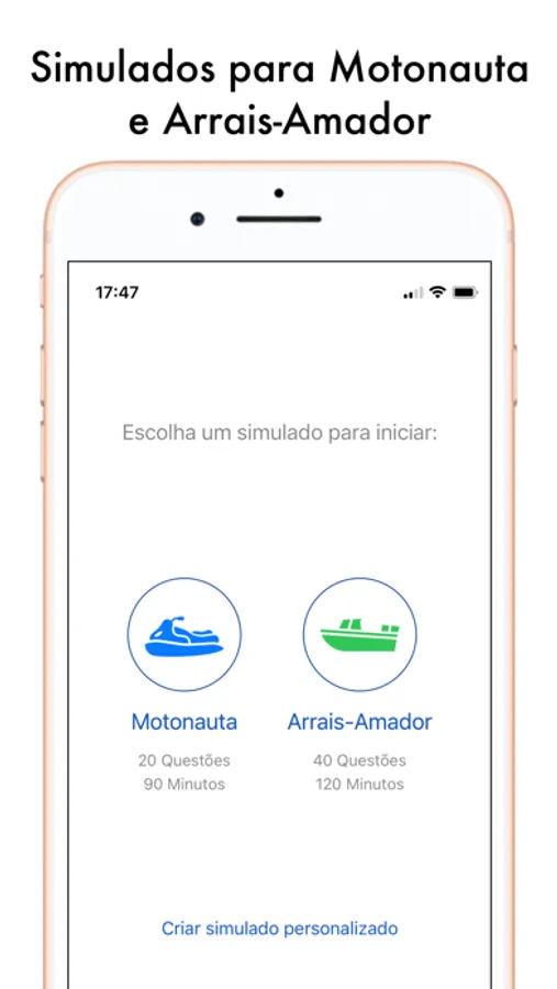 Baixe agora o melhor app de simulados para prova teórica da Marinha para habilitação de Motonauta e Arrais-Amador.