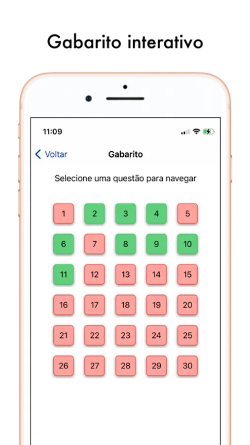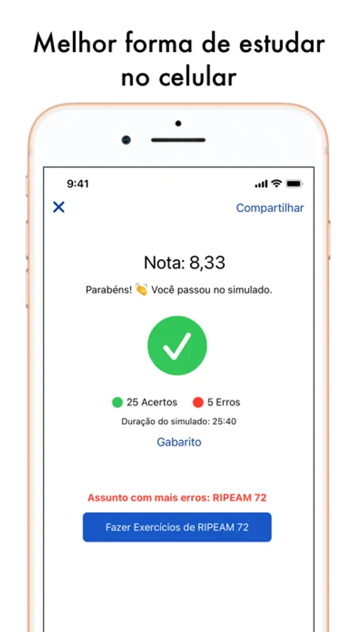 O app ainda conta com um histórico das provas que você realizou, para você acompanhar seu desempenho e mostra quais assuntos você está com mais dificuldade, assim você saberá exatamente o que estudar.