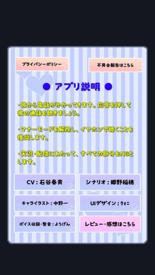 疑似彼氏との通話を楽しめる恋愛アプリゲームです。
