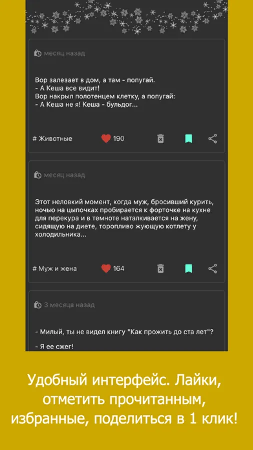 Приложение рассчитано на работу с интернетом, для загрузки анекдотов, рейтинга, лайков.
