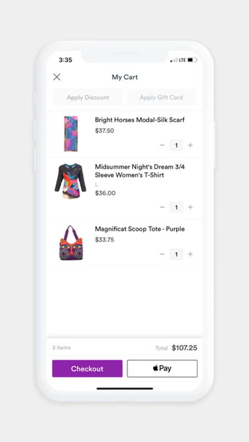 • Check out with PayPal, Apple Pay, or credit cards