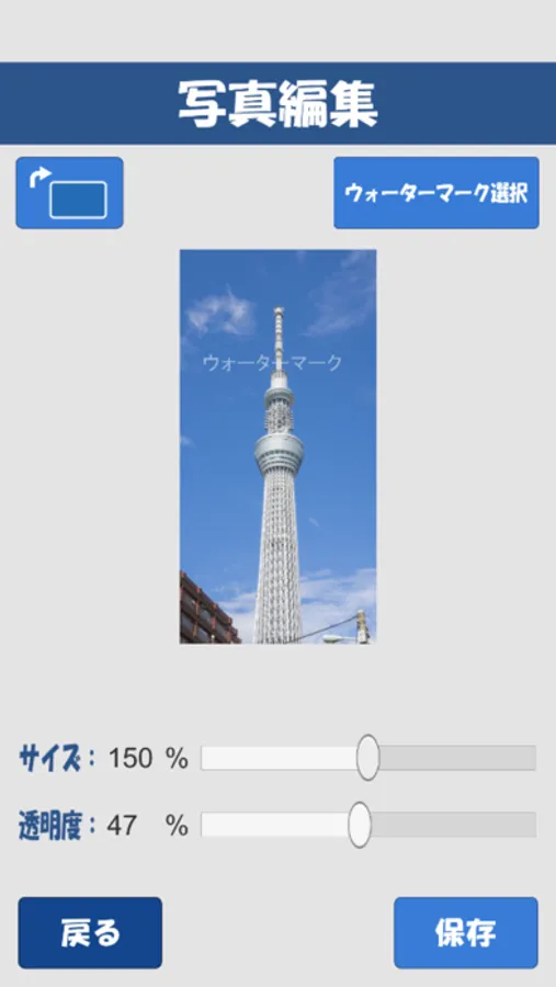 ・スマホで写真撮影し、そのまま透かし(ウォーターマーク)を合成することができます。